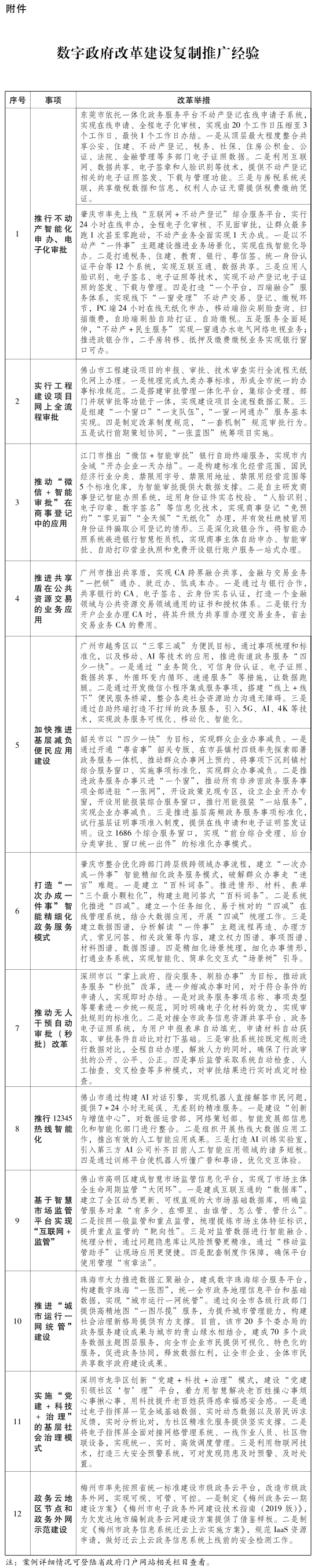 充分发挥数字政府改革的支撑牵引作用,强化与粤港澳大湾区建设、深圳先行示范区建设和广州实现老城市新活力,以及深化“放管服”改革、优化营商环境等重点工作一体部署、一体推进,以点带面推动其他领域改革取得新突破。