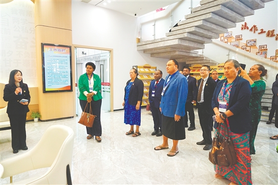 11月,由萨摩亚、库克群岛、基里巴斯、瑙鲁、纽埃、巴布亚新几内亚、所罗门群岛、斐济等8个国家的议员和议会官员组成的太平洋岛国议员研讨班成员莅临我市。参访首站,研讨班成员走进全国人大常委会法工委江海基层立法联系点。一张记录第100场立法意见征集活动的现场照片格外醒目,画面中社区长者、在校师生、企业职工、乡村居民等各界群众围绕国家法律草案逐条研讨、各抒己见,诠释了全过程人民民主的生动实践。该联系点已累计完成136项立法意见征集任务,上报4696条意见建议。翔实的数据让议员们深切感受到中国全过程人民民主的广度、深度与活力。