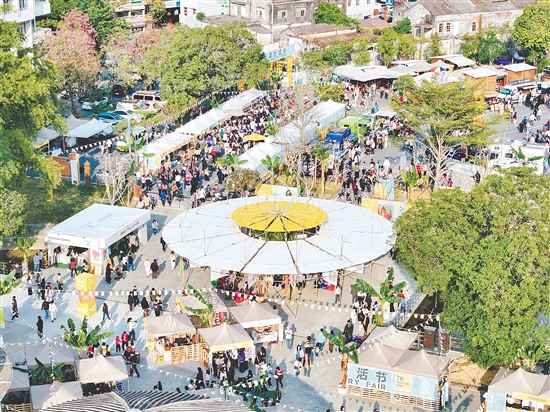 开平塘口镇塘口墟通过空间再造与文化浸润,形成新型社区文明生态。图为塘口“在地创生·圩度生活节”现场。塘口镇供图