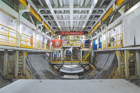 珠江口隧道位于东莞、广州之间的珠江入海口,为全线“卡脖子”工程。隧道全长13.69公里,采用“两端盾构+中间矿山”组合工法施工。其中,“深江1号”盾构机从东莞虎门向广州南沙方向掘进,隧道掘进长达5360米,最大埋深达116米,分为两段区间施工。