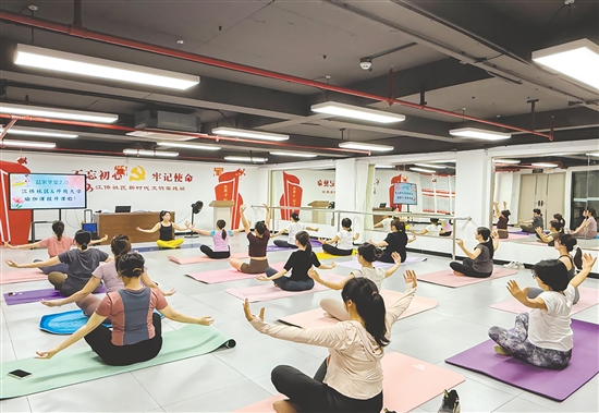江侨社区党支部打造的“益家学堂”已成为党群服务品牌。图为瑜伽课堂现场。
