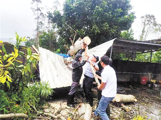 “陈叔,根据气象部门预测,台风‘摩羯’很快要登陆了,预计今晚会下大暴雨,你一定要注意安全,尽量不要外出。”9月5日,横陂镇湾海村党员干部一边帮70岁独居老人检查棚屋情况,一边向他传达台风预警信息。