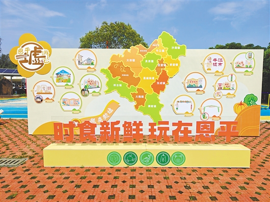 各镇(街)墟市Logo则在“恩平墟游记”Logo的基础上,标注了各自墟日举办的日期。比如恩城街道是“一六”墟,意味着恩城街道的墟日在每个月的1日、11日、21日,以及6日、16日、26日举办。活动现场,各镇(街)负责人还捧着各辖区的特色农特产品上台,向广大群众和游客发出“前来趁墟,感受当地特色乡镇文化、品尝特色美食”的诚挚邀请。