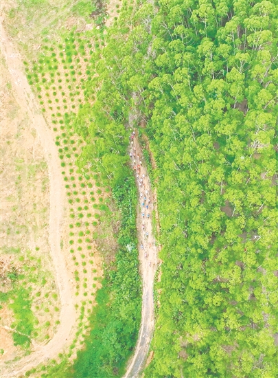 选手们在赛道上驰骋,身影和周边美丽景色融为一体。陈健强 摄