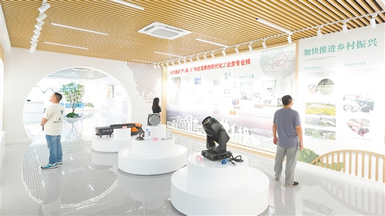 大槐镇美丽圩镇客厅以该镇制造的工业产品为线索,全面展示“百千万工程”的丰硕成果。