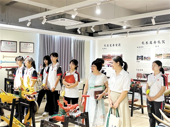 五邑大学“邑龙同舟”实践团走进礼乐街道,了解礼乐龙舟文化。