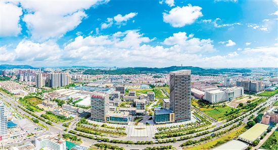 作为国家级高新区,江海区拥有国家级、省级、市级大型高端人才载体,“众创空间—孵化器—加速器—专业园区”孵化育成体系正逐步完善。图为高新创智城。彭伟宗 摄