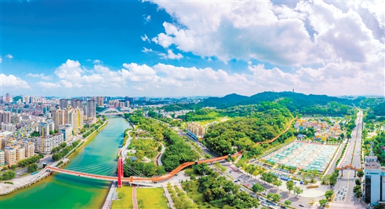 江海区统筹山、水、林、田,打造现代化、具有地方特色的高端生产生活生态环境。图为城央绿廊。彭伟宗 摄