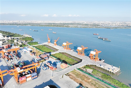 江门高新港启动南沙“一港通”以及蛇口、盐田“组合港”模式,深度融入大湾区港口群一体化发展。邱昱 摄