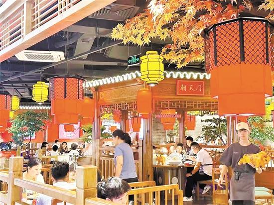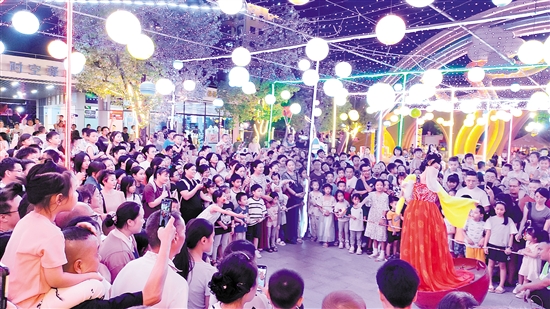 与此同时,江海区各大商圈人气十足,人潮涌动。购物的、品尝美食的、休闲娱乐的、遛娃的……大家不约而同聚集在这里。商家也非常“给力”,街唱快闪、汉服巡游、热血篮球……国庆期间,江海广场、江海万达广场两大商业体举办系列促消费活动,累计营业额约1590万元,同比增长约11%。