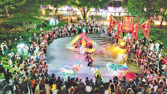 “夜舞金龙·祥聚江海”夜光龙狮巡游活动是江海区国庆假期的亮点之一。