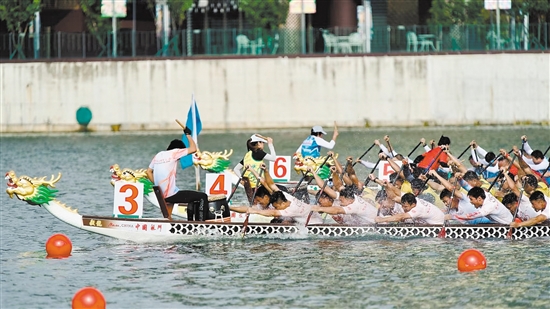 比赛中,礼乐礼联龙舟队充分展现出团结拼搏、和谐进取的龙舟精神。在10月19日举办的公开组2000米(追逐赛)中,来自大湾区的24支队伍展开了激烈的角逐。“赛事以追逐赛的形式进行,极为考验每位队员的耐力,其中弯道十分考验舵手的掌控能力。赛事的竞技性相当高,直线赛道上的竞争也非常激烈。”邓炳南表示。