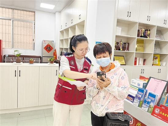 江海区统筹各方资源力量,努力解决群众“急难愁盼”。图为网格员在协助群众解决问题。