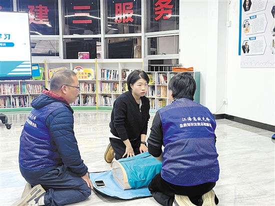 为确保每位队员都能熟练掌握急救技能,“江海急救先锋”急救知识宣教志愿服务队坚持每月开展专项训练,从心肺复苏到气道异物梗阻处理,从止血包扎到骨折固定,每一项技能都经过精心培训和严格考核。同时,该服务队还采取分级培训与模拟实战演练相结合的方式,提升教学水平,增强团队凝聚力。截至目前,已开展队内培训100多场,对外宣教服务200多场次,惠及群众2万多人次,成功救助群众300多人。他们的善举赢得了社会各界的广泛赞誉,也吸引了外卖骑手等新就业群体的积极参与。