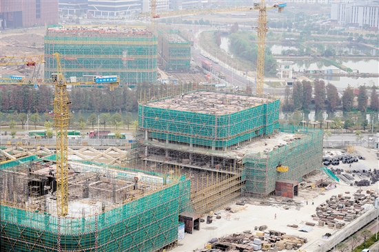 江门安全应急产业园区内,各项目正如火如荼建设中。