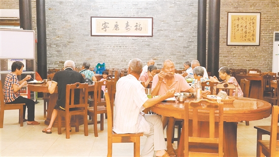 这家长者饭堂由祠堂改造而成,2019年开始投入使用,由村集体自筹资金运营,每年投入超70万元,坚持“政府补一点、集体贴一点、个人出一点”的公益定价,增强老人的获得感、幸福感。周艳娟算了一笔账:“每餐成本15元,老人支付5元,村集体补贴10元。看似‘亏本’买卖,换来的是长者健康的整体提升。”