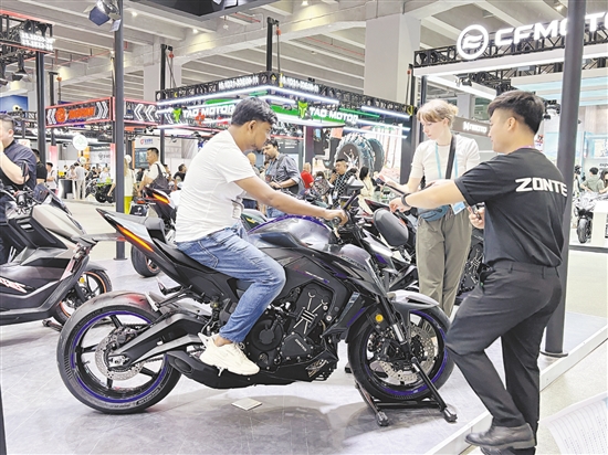 江海企业也为此次广交会做了充分准备。大冶摩托带来最新研发的ZT150T-X、ZT150-V的150水冷踏板车,力争挑战极速最快、提速最快、整备质量最轻、储物空间最大、续航最长、操控最好、适用身高范围最广、油耗最低等8项同级别产品世界之最。同时,大冶摩托研发的ZT703R大排量摩托车获得广交会设计创新奖(CF奖)银奖,也是今年江门市唯一获CF奖的企业。