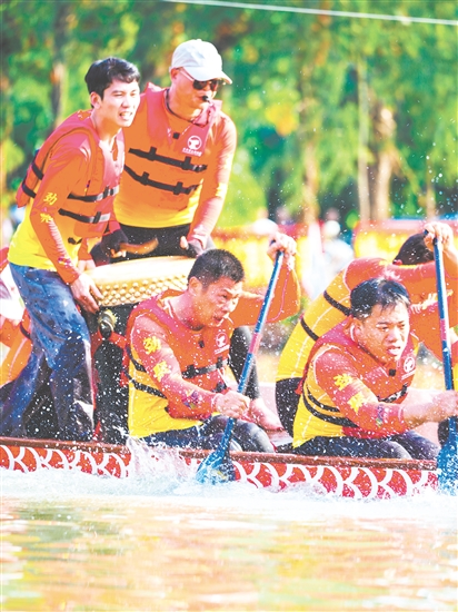 划手们正奋力划船,展开激烈角逐。 谢杰华 摄