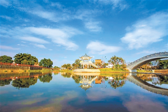 宅梧镇靖村村依托红色农旅资源,打造省级红色旅游目的地。水美乡村项目和半岛公园为该村增添了一道美丽风景。宅梧镇供图