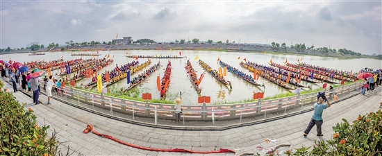 23支龙舟队齐聚升平河龙舟公园河段,十分壮观。