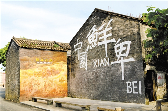 此外,为进一步强化文化标识与景观设计,霄南村利用清拆村内破旧房屋回收的青砖,复建了长达1200米的古城墙。同时,充分借助“双百行动”结对校——华南理工大学的资源,在村主干道部分青砖屋外墙绘制具有鲜卑文化特色的墙绘,进一步展现霄南村的乡村文化元素。