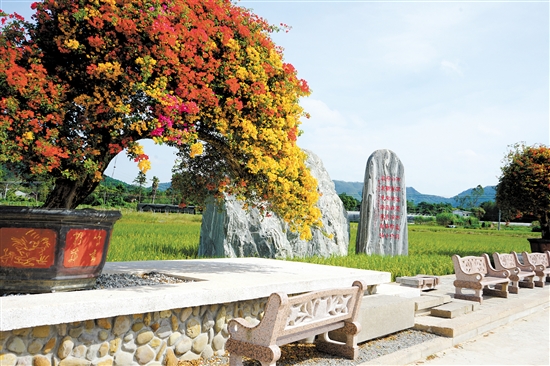 城西村请来的“外援”还有华南理工大学。在该校建筑学院的帮助下,城西村设计建造田园景观平台,并邀请民间书法家提笔刻石,将明代大儒陈白沙先生描绘昆仑山的诗句“两眼高凭何处空,白龙犹在有无中。旁观莫道昆仑小,气盖东南万万峰”刻在景观石上。在其背后,则正好是气势巍峨的昆仑山,诗句跃然景观石上,让意境与现实撞了个满怀。