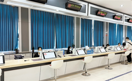 鹤山持续深化“高效办成一件事”改革,全力打造“鹤心意”美高梅博彩品牌。图为鹤山行政服务中心大厅。