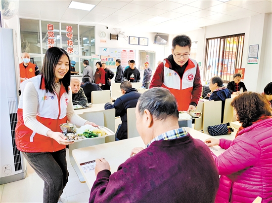 鹤山市沙坪街道凝聚社区服务力量办好群众的大小事。图为老人们在桂林社区长者食堂就餐。