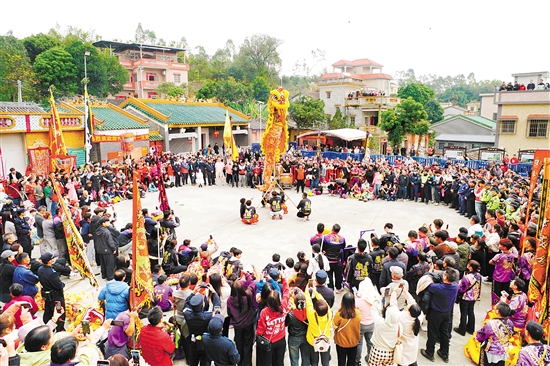 花炮庙会、舞龙舞狮、英歌舞表演……昨日(2月13日)是正月十六,鹤山市鹤城镇小官田村热闹非凡,一年一度的客家花炮庙会在小官田樟树下村关帝祖庙广场隆重举行。村民抬着大红烧猪,扛着彩旗仪仗,汇聚在樟树下村广场,参与还炮、抢炮等传统仪式,希望新的一年红红火火、顺顺利利。众多来自各地的民众及海外华侨华人,现场感受这一拥有300多年历史的省级非物质文化遗产代表性项目,延续新春的喜庆氛围。