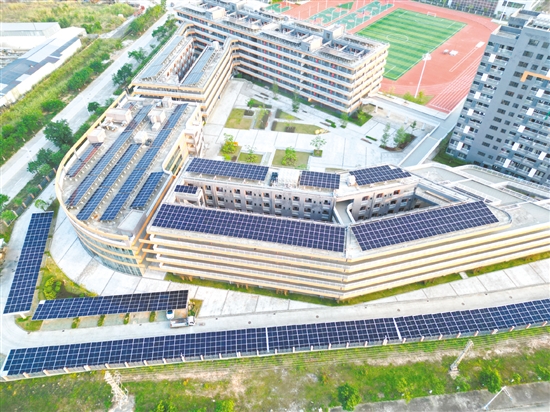 鹤山市职业技术学校采用“自发自用、余电上网”模式运作光伏项目,发电自用约63%。