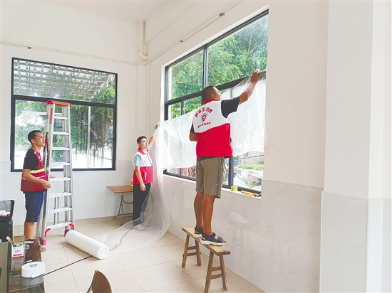 鹤山市各镇(街)对应急避难场所进行全面消杀灭蚊、纱窗安装等工作。
