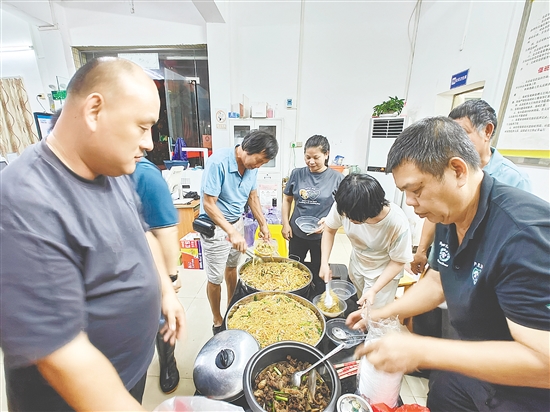 宅梧镇靖村村委会为转移群众准备暖心晚餐。