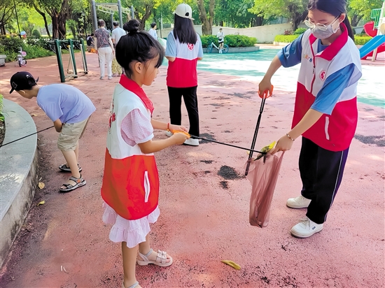 江门日报讯 (文/图 记者/李淑珩) 近日,开平市新时代文明实践中心以暑假为契机,先后组织开展了3场以“垃圾不落地 开平更美丽”为主题的“小手拉大手 绿色同行”文明实践志愿活动,组织超100个亲子家庭参加,亲子家庭用实际行动践行绿色、环保、文明健康的生活方式,绘就一幅幅生动的文明画卷。