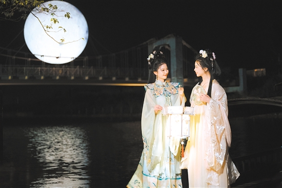 在赤坎华侨古镇,邂逅遍布各个景点的19个“超级月亮”,成为游客的“小惊喜”。今年中秋节,赤坎华侨古镇以“赤坎升明月”为主题,用月光照亮古镇的璀璨夜色。赤坎华侨古镇总经理胡腾鹤表示,江门是“中国侨都”,530多万港澳台同胞和海外侨胞遍布全球140多个国家和地区。百年前,正因为赤坎华侨心系家国,把所得的钱、技术等带回家乡,才有现在所看到的百年骑楼群、关族图书馆等。“中秋的圆月,托举起海外游子对故乡的思念与祝福。这次活动以‘赤坎升明月’为主题,既是表达侨乡的乡情,也是对人月两团圆的祝福。”胡腾鹤说道。