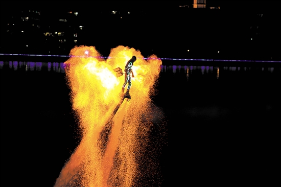 水上飞人火壶表演带来了非常震撼的视觉盛宴。 陈敏锐 摄