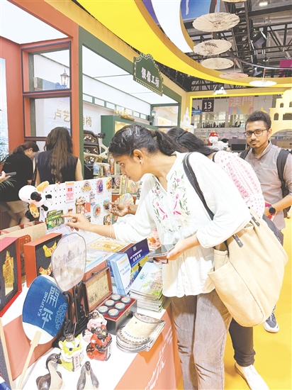 富有侨乡特色的开平文创产品吸引外籍客商关注。