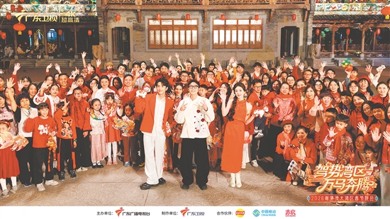江门日报讯 (记者/蔡昭璐) 2月15日晚,“驾势湾区 万马奔腾——2026粤港澳大湾区春节晚会”在广东卫视及全网多平台播出,江门赤坎分会场以9分钟实景镜头,将侨乡新春风貌呈现给全球观众,成为备受关注的亮点。