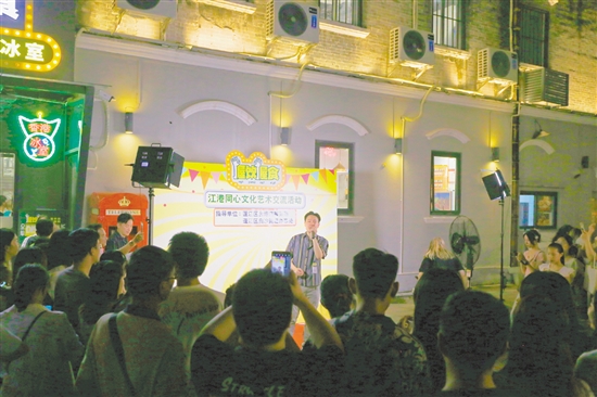 江门日报讯 (文/图 记者/罗霈 通讯员/陈瑞光) 7月20日晚上,一阵阵美妙的经典粤语歌声从白沙街道启明里广场传出,这是由区台港澳事务局、白沙街道办事处共同指导举办的江港同心文艺晚会,旨在搭建用好江港文化交流平台,吸引更多游客前来江门享受缤纷夜生活,为实施好“百千万工程”聚人气、增动力、添活力,
