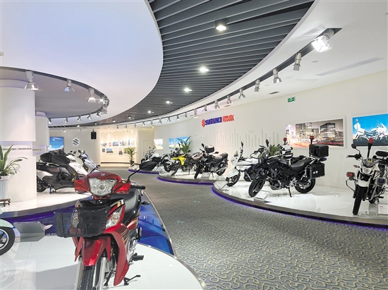 蓬江区近年来大力发展“3+2”产业集群。图为摩托车产业龙头企业大长江的展示厅。 任佳燕 摄