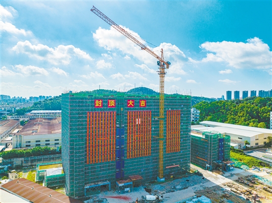 低效用地改造再提速,群星智能制造产业园首栋主体结构(2号厂房)实现封顶。 刘淑君 摄