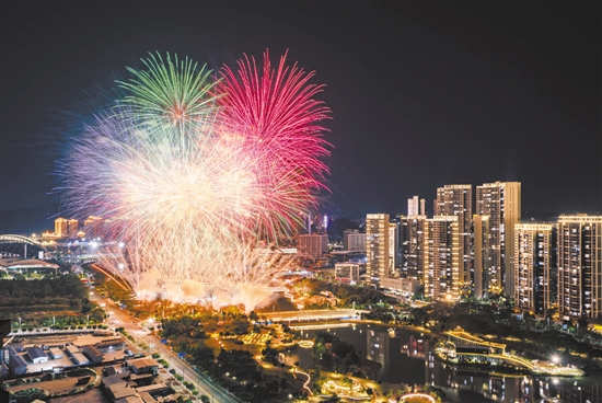 璀璨烟花闪耀蓬江夜。 周华东 摄