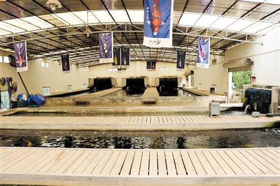 “这些锦鲤是我们与北京市水产技术推广站共同研发的中国彩鲤,其特点是无鳞、色彩更加鲜艳、花纹更为精致,非常适合鱼缸观赏。”黄锦明介绍,他原来是一位普通的锦鲤爱好者,自2010年踏入观赏鱼养殖行业以来,从最初的引进日本锦鲤,到如今自主养殖中国彩鲤,经历了无数次尝试与探索。