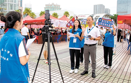 线下“火爆”,线上直播间也人气“爆棚”。本次招聘会同步设立了直播云聘会专区,由蓬江区零工市场工作人员与五邑大学学生组成的“邑零助媒”实践队伍开展线上直播带岗,介绍参会企业及招聘需求,让群众在家里也能第一时间了解招聘信息,累计吸引逾千人次在线观看。