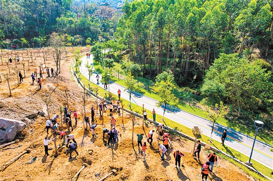 春风送暖,阳光正好,正是播种好时节。为深入贯彻落实习近平生态文明思想,营造“城在林中、路在绿中、房在园中、人在景中”的绿美蓬江人居环境,在今年植树节前后,蓬江区各界积极开展义务植树活动,全民共建美丽宜居家园。