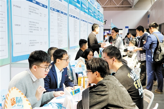 企业代表与求职者面对面交流。