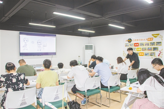 媒体从业者任伟斌则在漫画课程中找到了乐趣。“平时工作节奏快,想找件能静下心的事做,看到夜校有漫画课就立刻报名了。”4节课下来,他先学习了画眼睛、头发等局部细节,并逐步掌握人物整体描绘与上色技巧。更让他惊喜的是,在课堂上结识了一群志同道合的“打工人”,课后众人常会交流创作心得,“既能放松身心,又能拓展社交,特别好”。