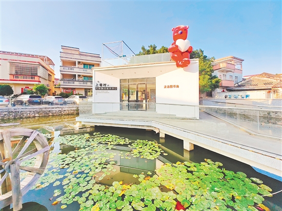 “水上书吧”是村内标志性文旅建筑,集文化服务和休闲功能于一体。