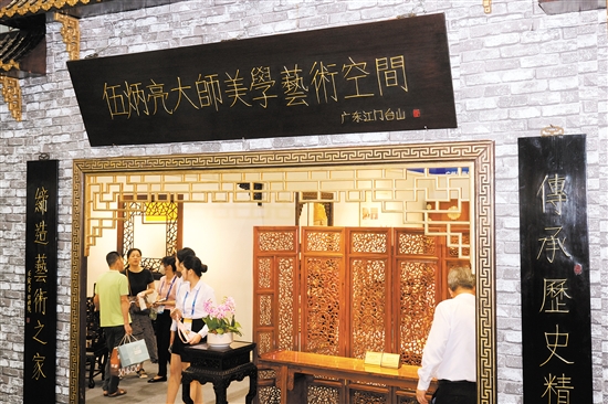 中国工艺美术大师伍炳亮携其打造的黄花梨家具珍品亮相文博会。 陈方欢 摄