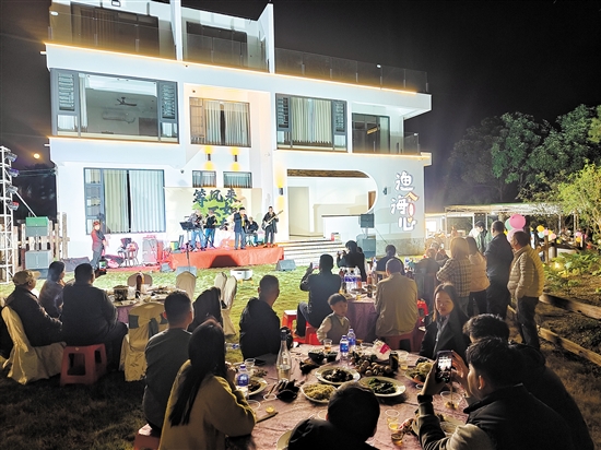 江门日报讯 (文/图 记者 郭永乐) 近日,台山市广海镇鲲鹏村的渔海心民宿举行了一场港乐专题音乐会,来自台山、东莞、湛江等地的音乐人为游客演唱了《风的季节》《夕阳之歌》《大地恩情》《问谁领风骚》等香港经典歌曲,让来自香港、澳门的游客大呼过瘾。