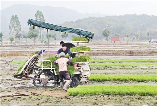 此外,试验基地强化科技赋能,打造产业全链。一方面,多方统筹引进新型现代化农机设备,示范推广水稻育秧机插技术,利用无人机进行施肥施药作业;完善农业基础设施,修缮排灌沟渠、机耕路,改善农业生产用水条件,逐步摆脱“靠天”吃饭困境。另一方面,坚持“以种适地”“以地适种”相结合,利用耐盐碱水稻营养价值高的优点,试种性能稳定、抗倒伏、产量高的彩色保健功能丝苗米水稻新品种,通过科学种植、有效改良,提升土地效益,实现耕地资源扩容、提质、增效,让更多撂荒地变成致富田。